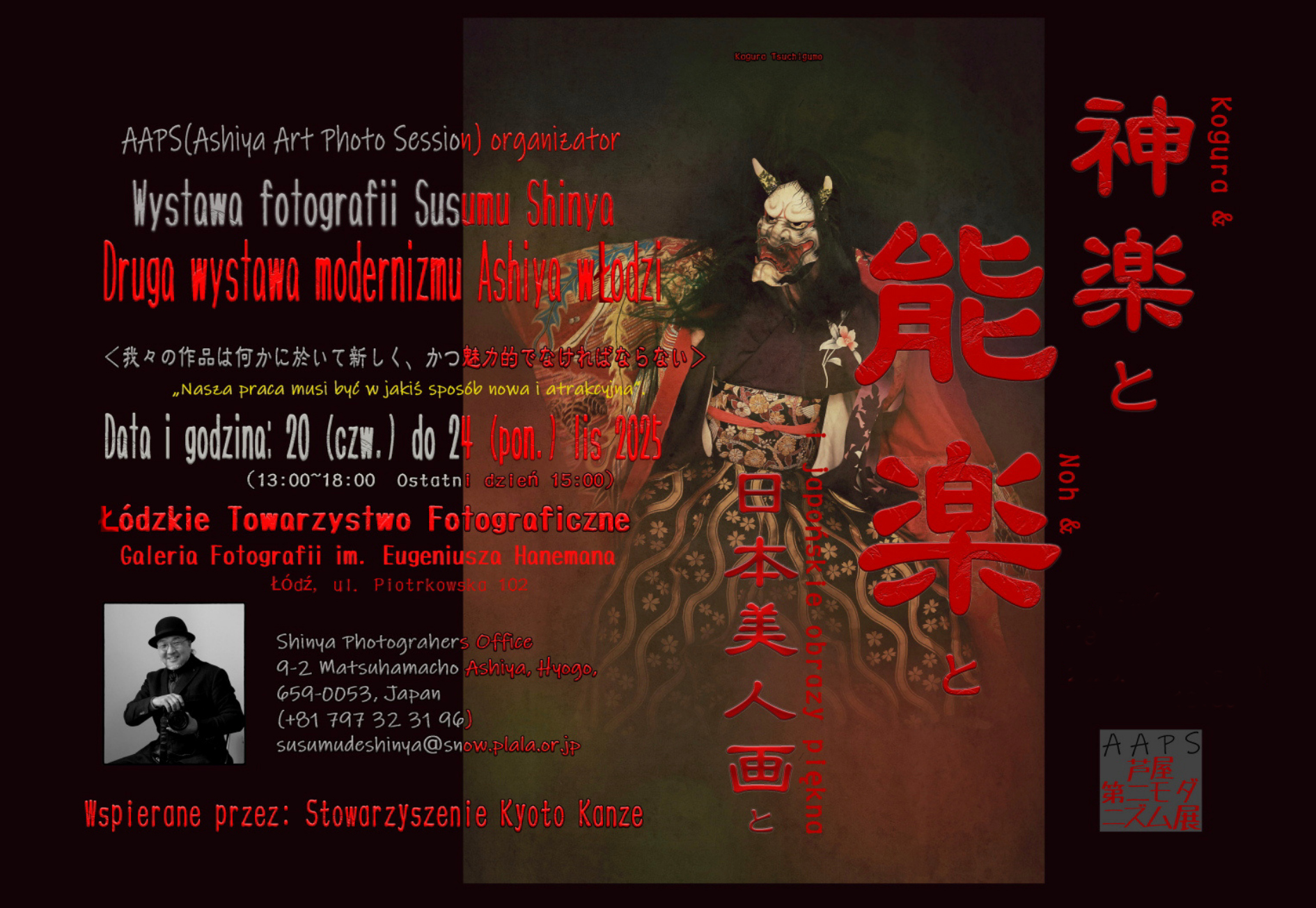 Susumu Shinya, pochodzący z Kobe, od kilku lat współpracuje z Łódzkiem Towarzystwem Fotograficznym oraz Towarzystwem Fotograficznym w Paryżu, gdzie regularnie prezentuje swoje prace na prestiżowych wystawach.