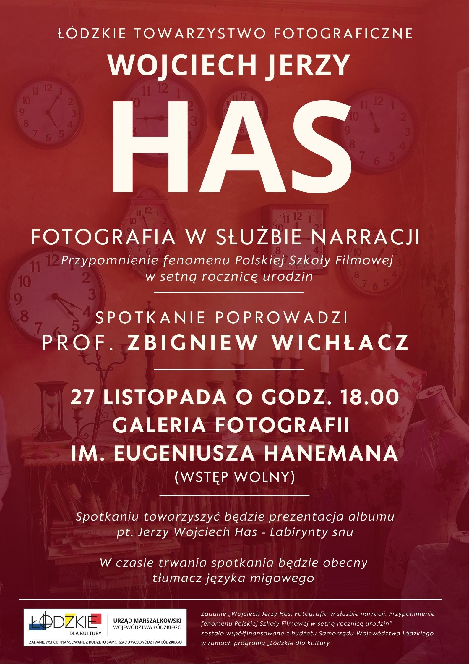 Podczas wydarzenia prof. Zbigniew Wichłacz opowie o wizualnej wrażliwości reżysera, o kompozycji i symbolice kadru, a także o tym, jak fotograficzne spojrzenie wpływało na emocjonalną i artystyczną głębię jego filmów – od „Rękopisu znalezionego w Saragossie”, po „Sanatorium pod Klepsydrą”. Spotkaniu towarzyszyć będzie prezentacja materiałów wizualnych oraz refleksja nad miejscem twórczości Hasa w historii polskiej kinematografii.